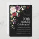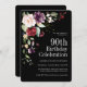Comemore um 90 de aniversário em estilo boho bonito com este convite de aniversário floral de aquarela único em preto sofisticado. Ele tem um adorável buquê floral na combinação de cor na moda de vermelho burgundy, rosa-pinto-pincel, roxo de ameixa e pêssego com um verde sumptuoso espalhado por todo o lado. Faz uma escolha maravilhosa para celebrações a qualquer momento do ano. O reverso do convite é adornado com um buquê correspondente. Este convite está disponível tanto como um convite impresso como um download digital para sua conveniência!