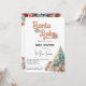 Este convite para o Chá de fraldas de Natal com as palavras "Papais noeis Bebê" em letra retrógrada e adornado com gráficos de vassoura de uma árvore de Natal e presentes é uma peça de papelaria encantadora e festiva. O design geral do convite é uma mistura harmoniosa de estética retrô e boho, criando uma atmosfera quente e convidativa para o chá de fraldas de Natal. As cores são ricas e convidativas, e os gráficos evocam um sentimento de nostalgia e celebração. É uma representação perfeita da alegria e da festividade que vem com a recepção de um novo bebê durante o feriado.