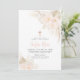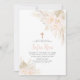 Florais boho rosa com palmas secas, grama dos pampas e uma cruz de folha de ouro falso rosa. Um lindo e elegante convite de batizado ou batismo para o dia especial das suas meninas.