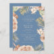 Convite Boho Rosas Tropicais Dusty Casamento Azul
