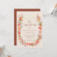 Laranja queimada e beige Boho Casamento outono floral Convite com cor d'água pintada manualmente Wreath Wildflower e roteiro elegante Comemore seu casamento de outono em estilo com este boho outono faça um convite moderno para o casamento, apresentando uma coroa de flores silvestres pintada manualmente em tons quentes e sujos. Perfeito para um casamento temático rústico ou boêmico, este convite inclui ricas sombras de terracota, laranja queimada, bege, pêssego e amarelo-ouro ideal para paletas de cor casamento outono. Desenvolvido pela artista Catherine Sweetman, este convite de casamento único apresenta uma coroa floral seca com flores silvestres e folhagem de cor aquosa em cores inspiradas no outono: número queimado, coral, castanho, rosa mole, verde e roxo. Colocada contra um fundo de terracota profundo, a design é completada com um elegante roteiro de laranja queimado — perfeito para um casamento romântico ao ar livre ou vinhedo. Quer você esteja planejando um casamento em setembro, outubro ou novembro, este convite floral de casamento combina com casamentos de celeiro, cerimônias de florestas, locais de montanha ou recepções rústicas ao ar livre. Uma escolha de excelente para casais que buscam um design artístico inspirado na natureza, com charme de feitiço. Totalmente personalizável e fácil de editar, este modelo permite personalizar todos os detalhes do seu dia especial. Faça uma bela primeira impressão com este convite moderno, mas eterno, ao casamento outono.