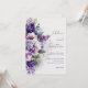 Faça uma declaração com esta na moda Purple Lavanda Boho Rustic Floral Elegant Invitation! Este cartão de casamento chique e atordoante apresenta uma bela design floral de cor d'água inspirada no jardim em tons de roxo, complementada perfeitamente por uma elegante e moderna tipografia de escrita de caligrafia. Quer você esteja planejando um casamento íntimo ou um caso de grande salão de baile, esta suíte de convite de casamento vai dar o tom para seu dia especial. Imprima seus hóspedes com nossa design que capta a essência do seu tema de casamento boêmico e cria uma impressão duradoura.
