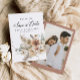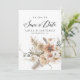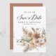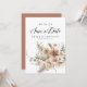 Boho Rustic Save the Date foi projetado com ilustração floral de tons de terra. Personalize seu cartão adicionando sua foto favorita no verso. Design do Partido Cava