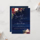 Convite de chá de panela Rústico Boho, apresenta flores aquarela Burgundy / Marsala e Peônias Creme e fundo de painéis de madeira azul naval rústico.