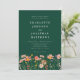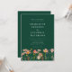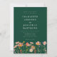 Convite de casamento floral boho chic verde de outono com flores pintadas à mão com aquarela de prado de flores silvestres. Este elegante convite de casamento terracota escuro com código QR do site de casamento com RSVP, uma mistura deslumbrante de charme outonal e sofisticação elegante. Este design de aquarela apresenta flores silvestres pintadas à mão em um vibrante jardim de prado, com uma rica paleta de laranja queimado, terracota, marrom, roxo, amarelo, coral, umbra queimada, pêssego e rosa suave, capturando a calidez e a beleza da estação de outono em um fundo verde esmeralda escuro.