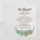 Este cartão de convite de recepção de casamento com suculentas florais rústicas boho é perfeito para um casamento com tema rústico, country ou deserto. O design apresenta lindas suculentas coloridas em verde, rosa e roxo dispostas em uma grinalda de galhos e acentuadas com confetes dourados. Cartões de RSVP são vendidos separadamente.