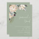 Boho Sage White Protea Pampas Grass Casamento Convite para o casamento floral em negrito com um arranjo floral de proteína branca num fundo colorido de sábado.