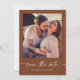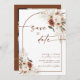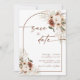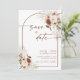 Anúncio de Casamento Rustic Boho, Convite Terracotta Fall Este adorável Salve a Data apresenta belos buquês florais de boho em várias cores de terracota, verde e bege. Esta bela design neutra é boa para qualquer estação! É a maneira perfeita de anunciar seu noivado às suas pessoas favoritas! Use a "Ferramenta Editar Design" para personalizar este design!