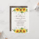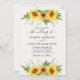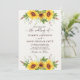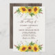 Um belo convite de casamento inspirado em vassoura, com flores de sol, penas e folhas verdes e cruas, realçadas com elegante texto marrom-terra. Personalize com seu próprio texto/detalhes! Se quiser alterar o estilo da fonte, a cor ou o posicionamento do texto, basta clicar no botão "Personalizar Mais".
