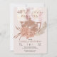 Boho rosa e terracotta hydrangeas, pampas e gramíneas secas com bule de terracotta e texto de script "Aniversário" "PAR-TEA" com texturas de faux de aquarela e gradientes de aparência de mármore. Todo texto é editável, exceto o texto do script "Aniversário", que só pode ser editado pelo designer. Design composto por Designs Holiday Hearts.