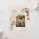 Este convite de casamento apresenta um estilo botânico vintage romântico e suave com influências sutis boho e rústicas. O design exibe flores delicadas em estilo gravado em tons de terracota, sage e taupe quente, colocados contra um fundo de pergaminho texturizado falso, dando-lhe um sentimento de herança e mundo antigo. Uma moldura de foto arqueada no centro adiciona um elemento arquitetônico moderno, mas atemporal, misturando elegância clássica com charme relaxado do campo. A paleta de cores terrosas, detalhes de folhagem natural e layout orgânico tendem para o boho-rústico, enquanto a tipografia refinada e a composição estruturada mantêm-no polido e sofisticado, em vez de excessivamente casual.