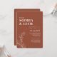 Um convite de casamento minimalista em teracotta com tipografia branca para o melhor visual de boho chic, inclui espaços de modelo no verso para adicionar detalhes e RSVP Código QR Se você precisar de designs correspondentes que não estejam na coleção ou que precisem de ajuda, por favor me avise (Maria). Feliz em ajudar!