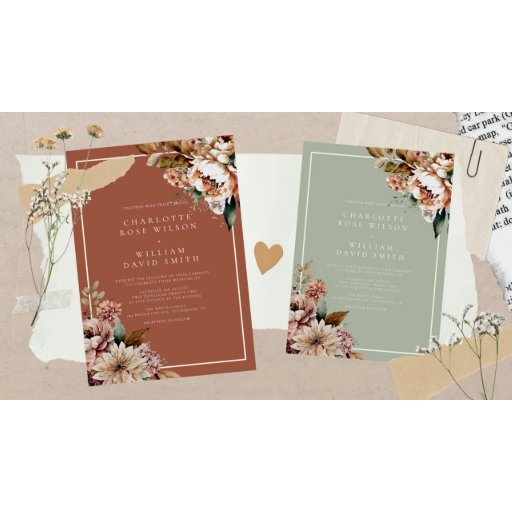 Convite Boho Terracotta Watercolor Flowers Casamento de Ou