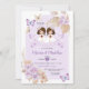 Boho TWIN Garota Primeira Sagrada Comunhão Flores Roxas Convite Primera Comunión.
