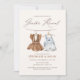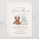 Convide amigos e família para a grande revelação com este convite, que inclui roupas de bebê aquáticas e tipografia elegante.