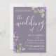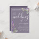 Um único eucalipto roxo empoeirado e convite de casamento de Lavanda. Ilustrações originais de aquarelas em verde-sábio e lilás com caligrafia branca. Fácil de personalizar com suas próprias informações.