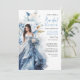 Convite Boho watercolor navy and white flower bridal dress