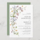 Boho Whimsical Wildflower Sage Greenery Botânico Elegante Simples Convite Para Casamento. Convite minimalista de buquê de flor silvestre, estilo boêmio, com elegante e simples botânicos verdes florais de folha verde, em cor d'água impressa à mão. A cor verde de fundo sage é linda para casamentos de boho e casamentos verdes. Convites editáveis para primavera, verão, outono (outono) e casamentos no inverno.