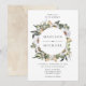 Convite para casamento floral elegante e único, com os seus nomes rodeados por flores brancas de aquarela e folhagem exuberante em tons ricos de verde, bege e terra castanha. Personalize os convites florais adicionando detalhes como data de casamento, hora, local e informações de recepção. O convite reverte para um fundo de aquarela bege claro.