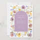 Este Convite para Casamento de primavera de Boho Wildflower captura a essência de uma celebração de primavera caprichosa com seus delicados florais de aquarela e um roteiro elegante com uma janela de arco roxo na moda. As matizes pastéis macios de azul, roxo, lilás, cor-de-rosa poeirento, pêssego, e dança amarela através da design, evocando uma atmosfera sonhenta e romântica de primavera. As flores silvestres luxuosas, aliadas a erva graciosa e sotaques folínicos, criam uma mistura perfeita de natureza e elegância. Ideal para casais que buscam uma estética única e livre, este convite oferece modelos fáceis de personalizar, permitindo que você adicione seus detalhes sem esforço e torne-os realmente seus. Quer você esteja planejando uma cerimônia íntima de jardim ou um caso ao ar livre, este convite traz um toque de beleza serena para seu dia especial. Arte original da artista Catherine Sweetman