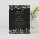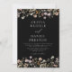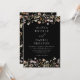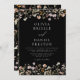Celebre o seu casamento com este convite de casamento para o jardim negro de flor silvestre. Apresentando um fundo negro ousado, flores silvestres delicadas de aquarela e elegante tipografia moderna, esta design impressionante combina encanto bêmico rústico com sofisticação moderna. Perfeito para casamentos noturnos, cerimônias de outono ou inverno, ou casais que amam papagaios e papelaria dramática. Personalize com os detalhes do seu casamento por uma questão de eterno.