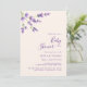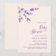 Este na moda e elegante convite para chás de fraldas mostra delicadas flores de lavanda de flor silvestre em um design de boho sereno, fazer perfeito para uma primavera, verão ou celebração de outono. O fundo cor-de-rosa suave melhora os florais suaves de lavanda, enquanto o roteiro de caligrafia complementa maravilhosamente o design. Itens correspondentes estão disponíveis.