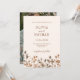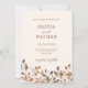 Este convite para casamento simples e feito de vassoura apresenta um fundo bege mudo e neutro e flores silvestres castanhas e terracotta de outono, com a sua foto no verso enquadrada por uma camada de flor silvestre correspondente.
