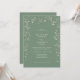 Bring a fresh botanical feel to your celebration with these sage green floral wedding invitations featuring a cascade of hand-painted watercolor baby’s breath along the top. The soft green tones give a refined vintage wildflower look while maintaining a clean, elegant layout. On the back, a coordinating watercolor wreath highlights your monogram for a meaningful, personalized finish. A lovely choice for couples who love sage, delicate florals, and a timeless botanical style.