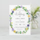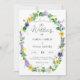 Este é um adorável convite de casamento temido por botânica rustica. O desenho apresenta uma coroa de flores silvestres de primavera, incluindo os daffodilos amarelos, os pavimentões roxos, os tremoços, os pântanos, os dandélions, as tulipas, a samambaia e a viticultura. Seria perfeito para um evento casual de primavera ou verão. Entre em contato com o designer para obter outros itens correspondentes ou quaisquer variações solicitadas deste produto.