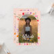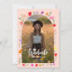 Celebrate your graduate with this charming hand-painted wildflower photo invitation, blooming in soft summer pinks, tangerine, red, lavender, and golden yellow tones on pink peach. The front features a whimsical floral arch framing a full photo, while the back includes two photos and editable event details in playful pink and charcoal typography. Ideal for spring and summer graduation celebrations, especially for those who love nature, garden vibes, or a boho aesthetic. Works beautifully for high school or college grads, especially creative or outdoorsy types. Fully editable template—just drop in your own photos and info.