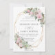 Este convite de casamento "boho chic" apresenta um quadro geométrico dourado adornado por elegantes arranjos florais de cor aquosa, cor-de-rosa castanha e rosa verde-sábio. Personalize-o com seus detalhes de forma fácil e rápida, basta pressionar o botão personalizar para reorganizar e formatar o estilo e a colocação do texto. c) O Feliz Cat Studio