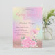 Convite Bokeh,Chá de fraldas Holográfico Flamingo Rosa Beb