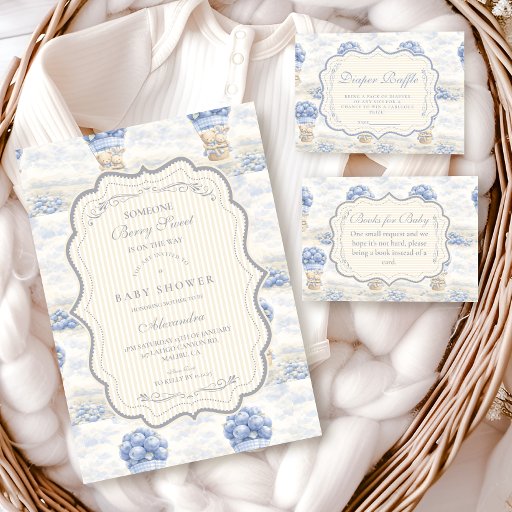 Blueberry Hot Air Balloon Toile Baby ShowerCriado por Andreea Eremia