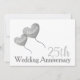 Convite moderno de aniversário de casamento de prata com balões de coração de prata em um fundo branco.