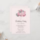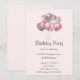 Convite de festa de aniversário com uma ilustração de um monte de balões nas cores rosa e cinza prateado.