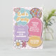convite de aniversário do Pastel com corações, margaridas, bola de disco e fundo de damas.