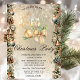 Um convite elegante para festas de Natal com bolas de Natal, sinos, pinecones e renas de ouro. Estes belos convites de Natal são perfeitos para convites de festas de janto de Natal, convites para troca de presentes de Natal, angariadores de fundos de Natal, convites para bolas de férias e outros eventos realizados durante o mês de dezembro. Use apenas os campos modelo para adicionar suas próprias informações de evento.