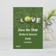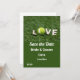 Bola de tênis com palavra de carta de amor na grama verde salvar a data Cartão postal