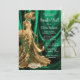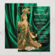 Convite de bola de tênis verde esmeralda e dourado com lindo vestido dourado e tênis em um belo fundo verde esmeralda. Você pode alterar o texto conforme necessário para o seu evento. Imprima em papel brilhante para obter os melhores resultados.