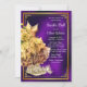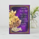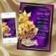 Convidado de bola de tênis roxo e dourado com bonito vestido de ouro e tênis num lindo fundo roxo e dourado. Você pode alterar o texto conforme necessário para o seu evento. Impressão em papel brilhante para obter melhores resultados.