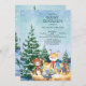 Convites de chá de bebê de inverno bonito, apresentando um fundo de neve florestal com os animais mais doces da floresta.