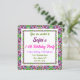 A garota fez convites de aniversário cor-de-rosa de outono verde. Um cartão de convite quadrado ousado e colorido para sua filha dar aos amigos e familiares para convidá-los para a festa de aniversário. Altere o texto para seu próprio uso usando o botão Personalizar. Ou edite as cores e o layout na ferramenta design. As cores do texto são tiradas das cores da borda vibrante. As cores do trabalho de fronteira para os aniversários no final do Verão e outono (outono). O texto contém todos os pormenores importantes, como o nome, a idade, a hora e a data da criança de aniversário e a localização do local do partido. Uma cor alegre, ousada e tropical inspirou um convite para uma importante celebração. A parte de trás dos convites mostram um padrão bonito, que pode ser mantido como uma bonito decoração de parede ou guarnição pelo receptor.