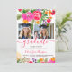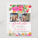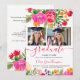 Convite Bold Pink Orange Boho Floral 2-Photo Graduation