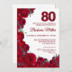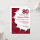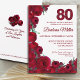 Convite Bold Red Floral 80 Birthday