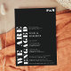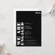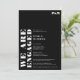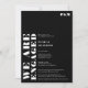 Festa de noivado de casamento branco e simples, a preto, com "estamos noivos", escrita em caracteres negros de tamanho excessivo, a preto e branco
