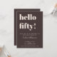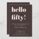 This modern 50th birthday invitation in brown features bold typography and a rich neutral color palette designed for a milestone celebration. The large “hello fifty” headline creates a strong focal point, paired with clean, minimal text that keeps event details clear and easy to read. Personalize the name, date, time, location, and RSVP information to match your event. A stylish option for celebrating a 50th birthday with a modern, timeless look.