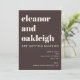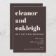 This wedding invitation in brown and cream features bold, modern typography paired with a rich neutral background for a clean, timeless look. Names, date, location, and RSVP details are fully customizable to match your celebration. A great choice for couples who love simple design, strong type, and a modern wedding aesthetic that feels current and classic at the same time.