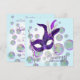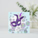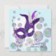 Bolhas azul-teal bonitas e máscara de penas convite de máscaras roxo template para festa. Este convite elegante de máscaras roxo é facilmente personalizado para o seu evento, simplesmente escolhendo o botão "Personalize!" para começar a adicionar os detalhes do seu evento, estilo de letra, tamanho e cor da letra, e texto. Por favor, note que todos os adesivos, cartões e desenhos de convite que você encontrará na Zazzle são gráficos impressos sem joias reais, laços, relevos, dourados ou peças ou partes adicionadas.