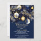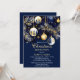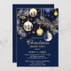 Janto de Natal clássico ouro e marinho azul borbulhas brancas e flocos de neve abetos de neve abeto modelo convite instantâneo