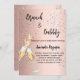 Um convite moderno, na moda e glamouroso para um Chá de panela de bolinho. Um fundo rosa de gradiente dourado com bolhas, um par de flautas, óculos. O nome é escrito com um moderno estilo escrito à mão. Personalize e adicione os detalhes da sua festa.